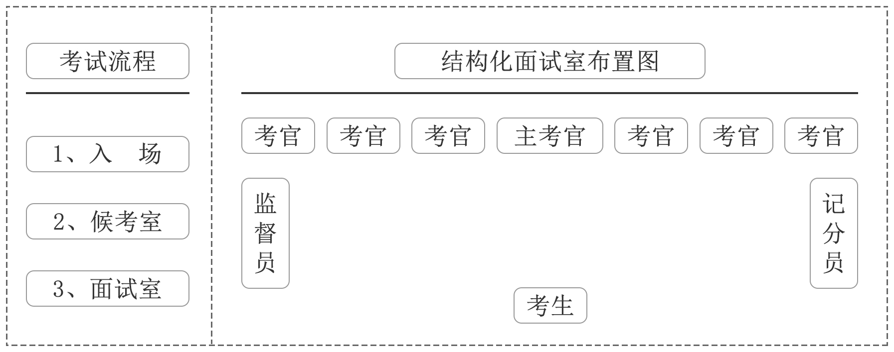 (1)全市各面試考場根據(jù)考生人數(shù)分別設(shè)置若干個面試組,每個面試組統(tǒng)一由7名考官組成。其中,主考1人,考官6人。主考和考官均于面試前通過分類抽簽確定分組。面試組不設(shè)用人單位考官。