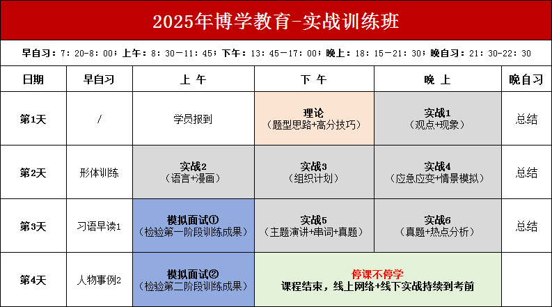 第四階段:考前回校集訓(xùn)4天3晚,熱點押題、強(qiáng)化訓(xùn)練、全真模擬