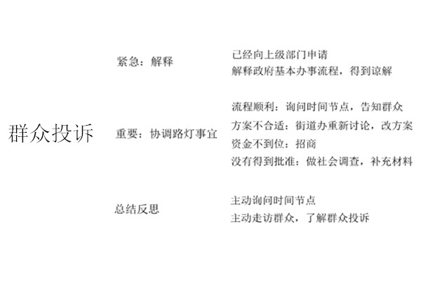本題側(cè)重考察考生解決問題的能力。考生在審題的過程中要對(duì)事件的輕重緩急和已經(jīng)給出的限定條件進(jìn)行明確。在解決問題過程要做到對(duì)策可行性強(qiáng),并進(jìn)行逐一解決。