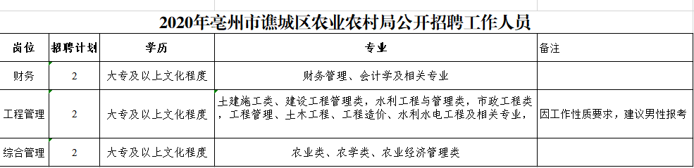 2020年亳州市譙城區(qū)農(nóng)業(yè)農(nóng)村局公開招聘工作人員公告