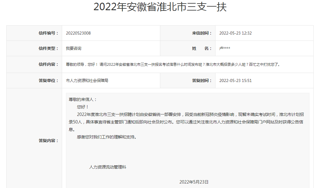 領(lǐng)導(dǎo),您好!請問2022年安徽省淮北市三支一扶報(bào)名考試信息什么時間發(fā)布呢?淮北市大概招錄多少人呢?百忙之中打擾您了。