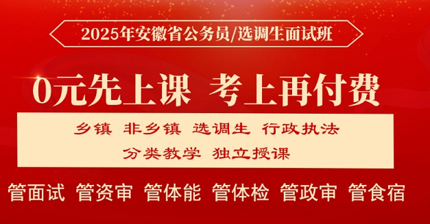 我們根據(jù)歷年面試考情定制了2025年安徽省公務員面試班,業(yè)內實力專家團隊將與您并肩戰(zhàn)斗!我們將提供科學的課程安排與出色的心理訓練和技術指導,戰(zhàn)勝一切對手!助您成公!