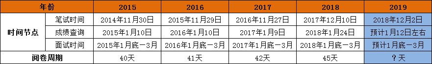 2019國家公務(wù)員考試筆試已于12月2日結(jié)束,那么,2019國考成績(jī)什么時(shí)候出呢?按照以往國考成績(jī)查詢時(shí)間預(yù)測(cè)2019國考成績(jī)查詢時(shí)間將在2019年1月中下旬左右,在此,小編附上歷年國家公務(wù)員考試成績(jī)查詢時(shí)間,希望能幫助各位考生做好面試備考的準(zhǔn)備。