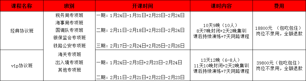 詳見協(xié)議(包括培訓(xùn)費、教材費、住宿費、餐費、水果點心費等一切費用)。學(xué)員無論任何情況未被錄用為2019年國家公務(wù)員,我校將退還全部費用。